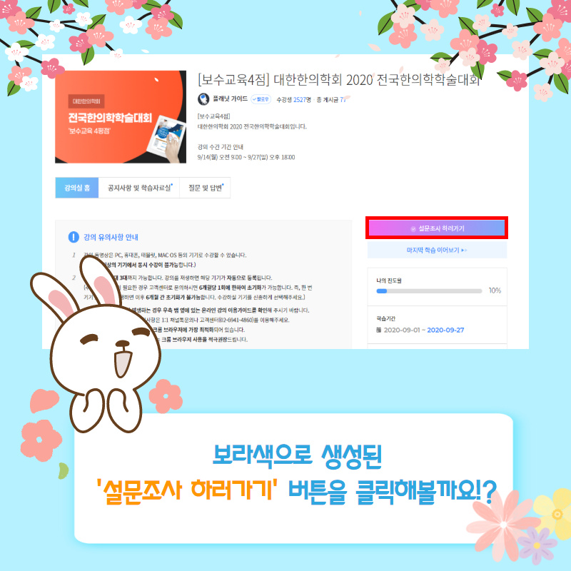 2020 온라인 전국한의학학술대회 이수증 신청 메뉴얼 페이지 정보 작성자 대한한의학회 댓글 0건 조회 21,890회 작성일 20-09-15 16:04 목록 본문 이전글2020 온라인 전국한의학학술대회 교육종료 20.09.28 다음글2020 온라인 전국한의학학술대회 시청 메뉴얼 20.09.14