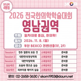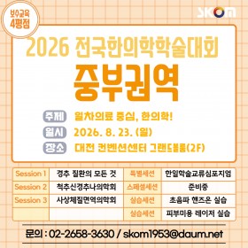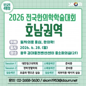 일정 : 2026-11-08 등록기간 : 2026-04-01 ~ 2026-11-042026 전국한의학학술대회 (수도권역)