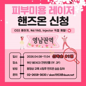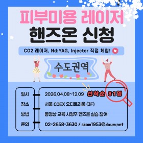 일정 : 2026-08-23 등록기간 : 2026-04-08 ~ 2026-08-19【영남】피부미용 레이저 핸즈온 실습 (CO2 레이저, Nd:YAG, Injector)