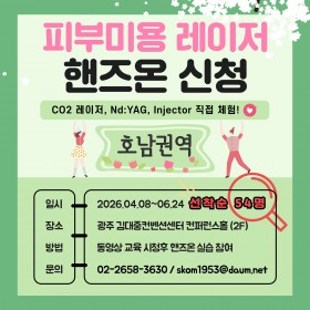 일정 : 2026-06-28 등록기간 : 2026-04-17 ~ 2026-06-24【호남】피부미용 레이저 핸즈온 실습 (CO2 레이저, Nd:YAG, Injector)