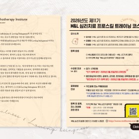 일정 : 2026-03-22 등록기간 : 2026-03-06 ~ 2026-03-202026년 제11기 M&L심리치료 프로스킬 트레이닝 코스