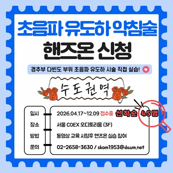 수도권역(특별세션 - 초음파 핸즈온 실습) 사전등록 진행 중 입니다.