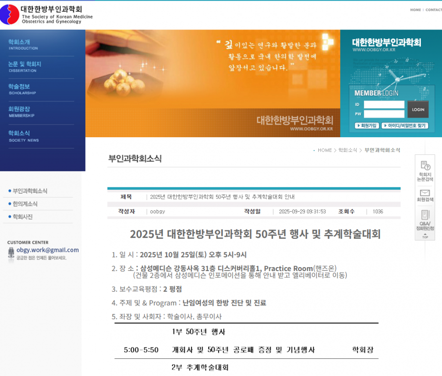 2025년 대한한방부인과학회 50주년 행사 및 추계학술대회