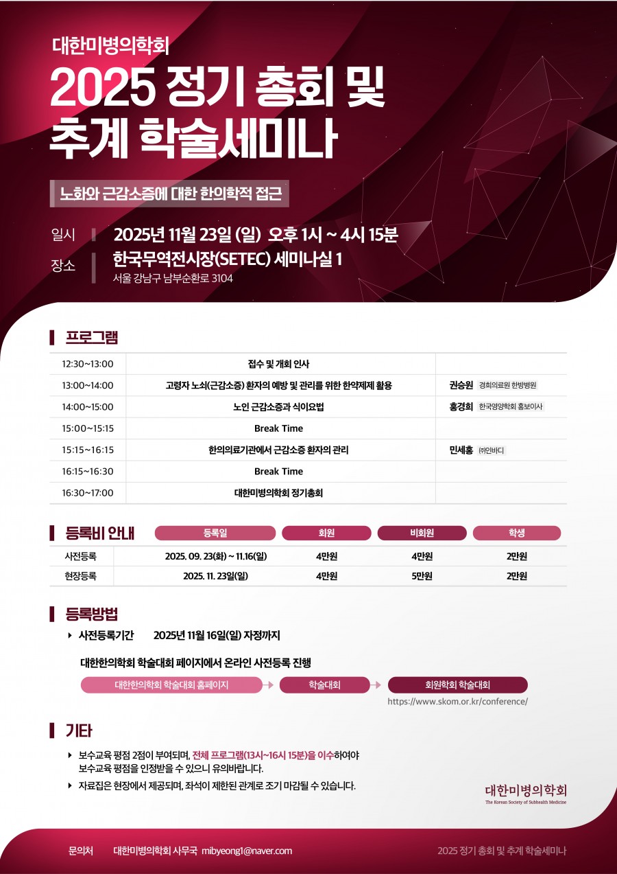 대한미병의학회 2025 정기총회 및 추계학술세미나
