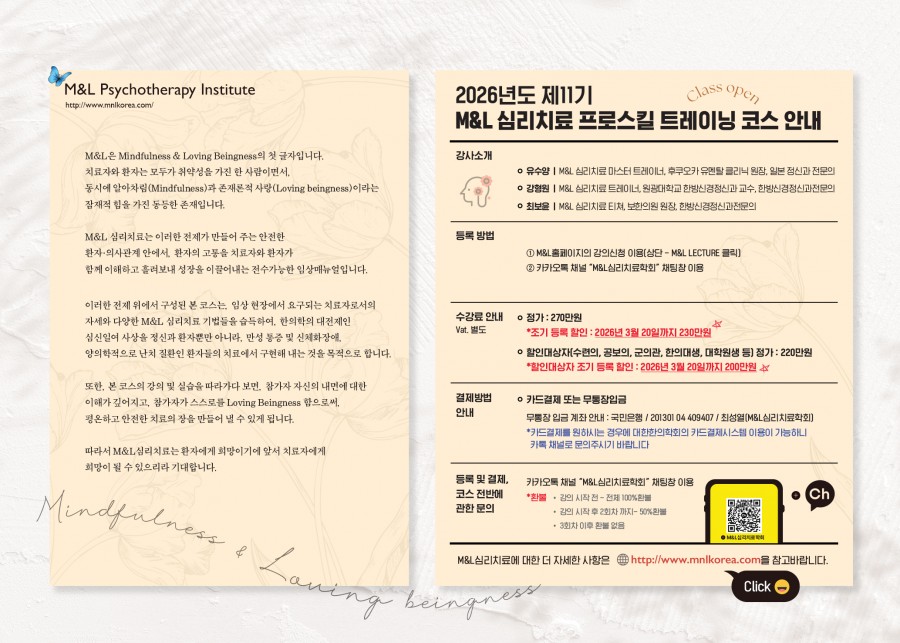2026년 제11기 M&L심리치료 프로스킬 트레이닝 코스