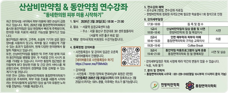 2026년 상반기 산삼비만약침 & 동안약침 연수강좌