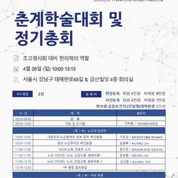 2026 춘계 대한예방한의학회 학술대회 및 정기총회