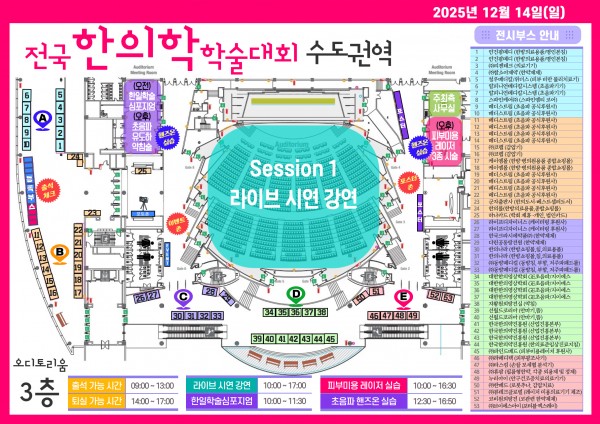 ● 2025전국한의학학술대회 (수도권역) 행사장 및 전시부스 배치도 페이지 정보 작성자 대한한의학회 댓글 0건 조회 61회 작성일 25-12-02 09:57 목록 본문 다음글● 2025전국한의학학술대회(수도권역) 프로그램 안내 25.11.21